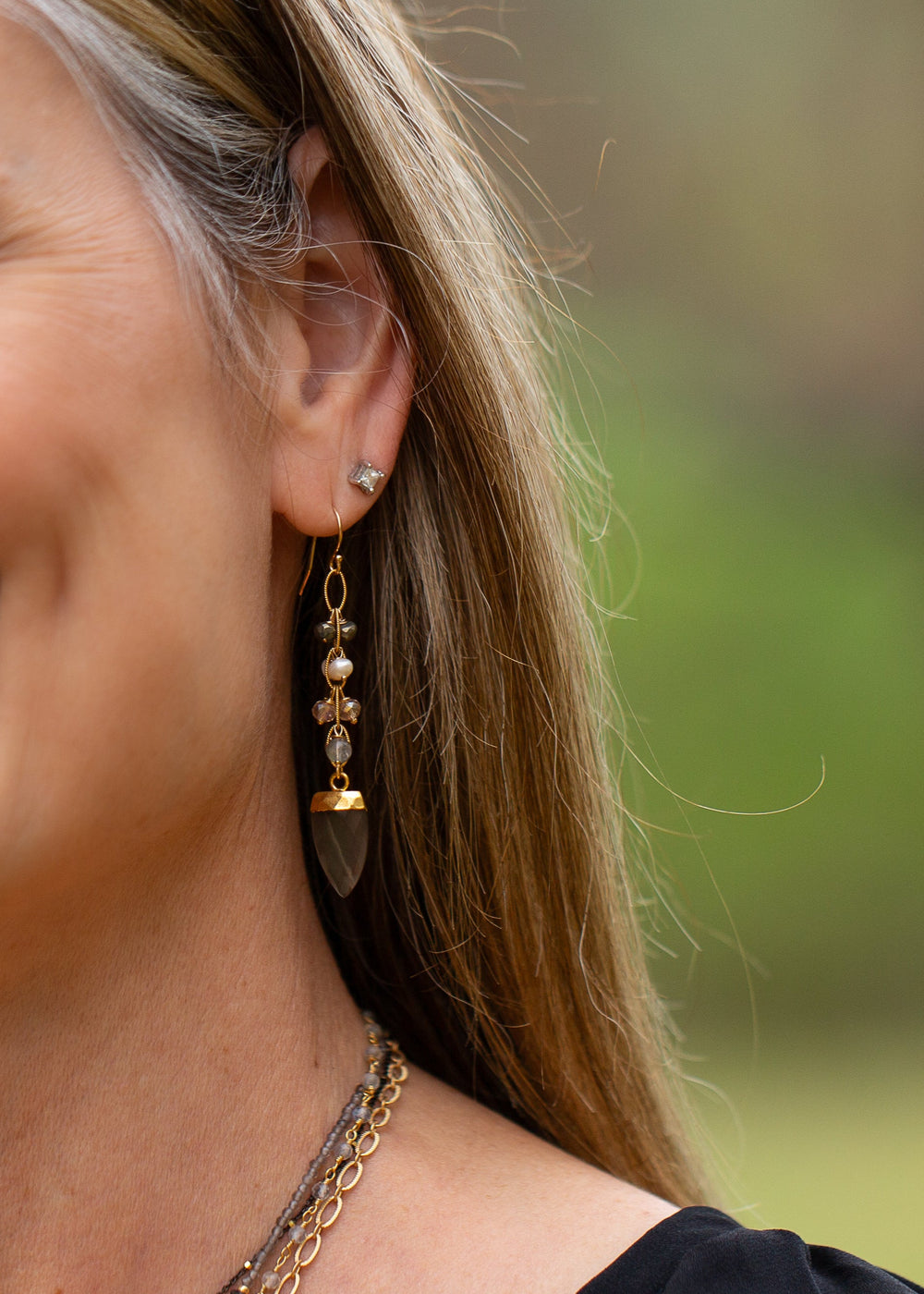 Alchemy Grey Moonstone Bezel, Labradorite, Pearl Dangle Earrings