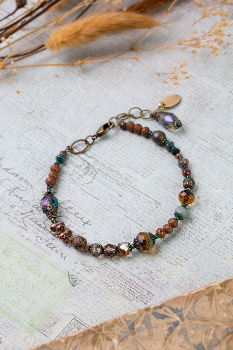 • 7.5-8.5" adjustable length, with antique brass lobster claw clasp