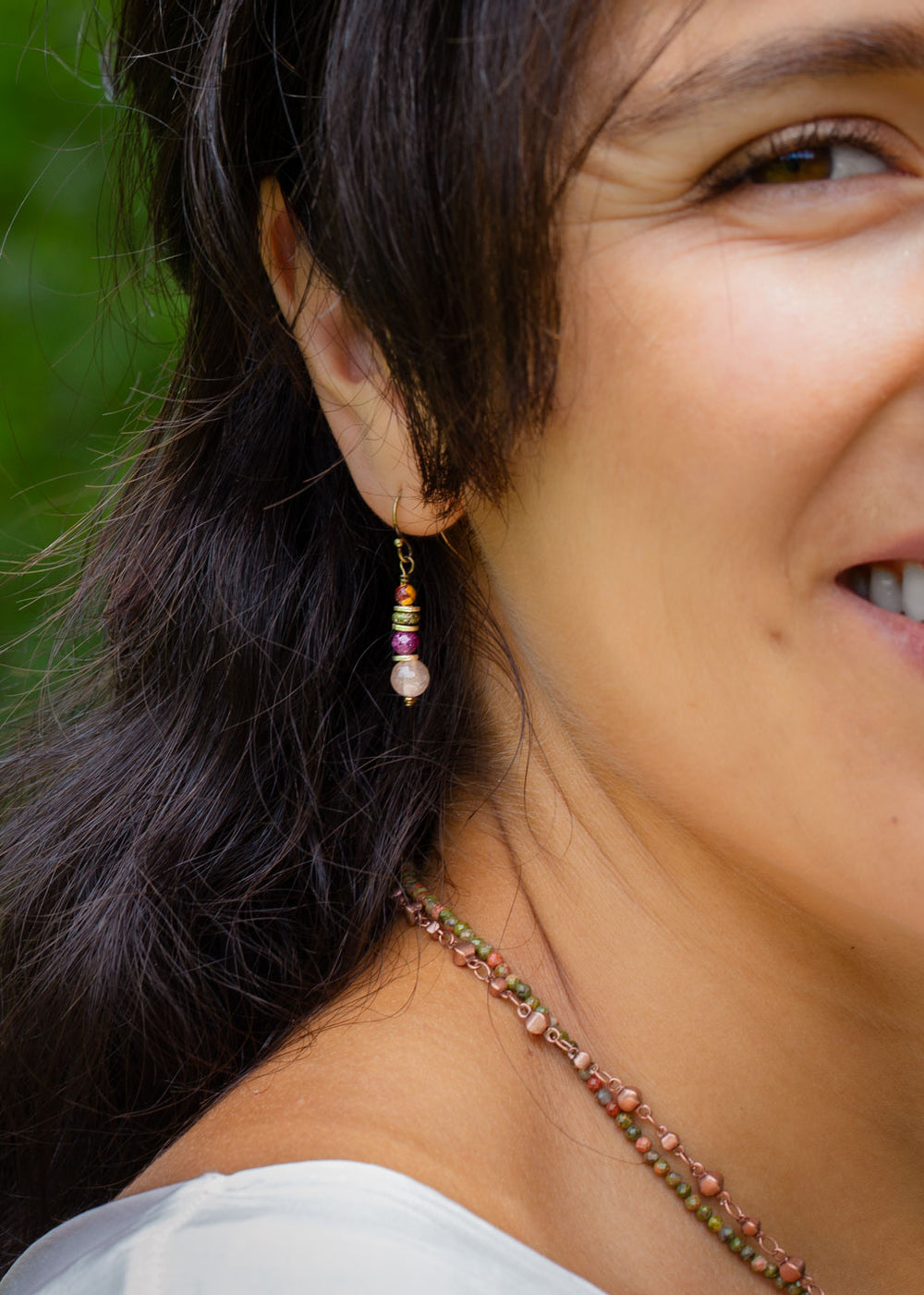 Dominion Muscovite, Ruby, Unakite Simple Earrings