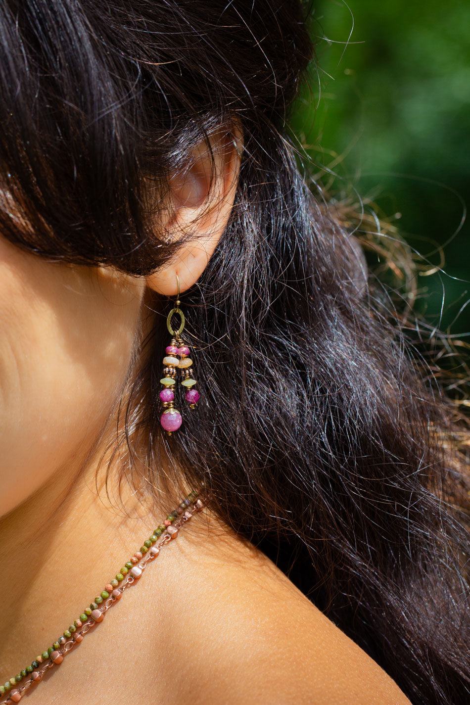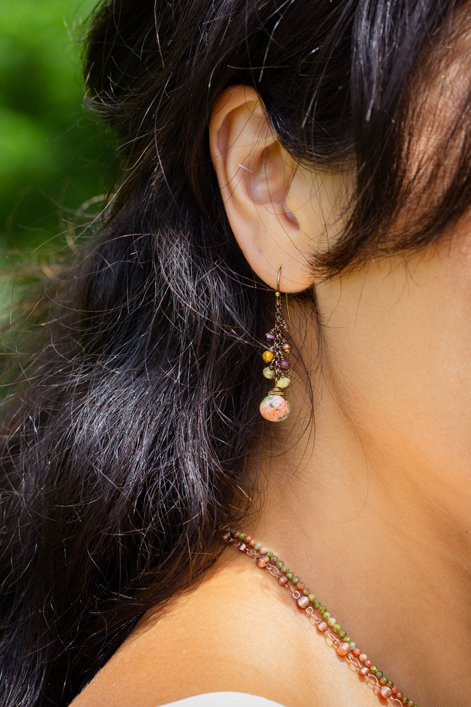 Dominion Unakite, Afghan Jade, Mookaite Cluster Earrings