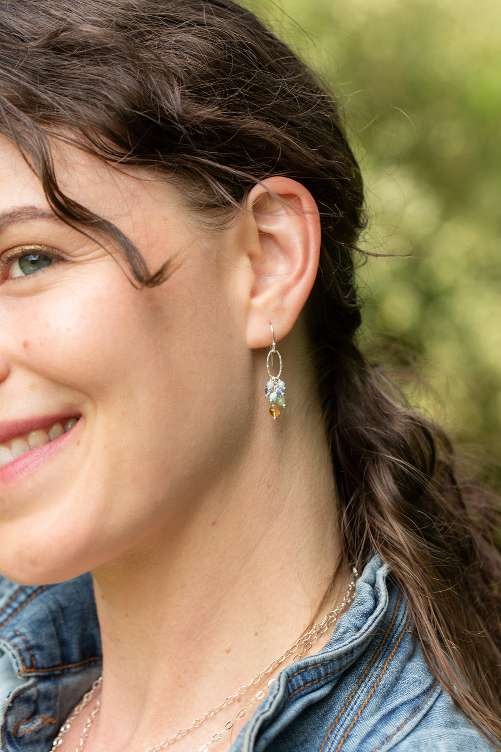 Sanctuary Citrine, Amethyst, Green Cats Eye With Larimar Cluster Earrings