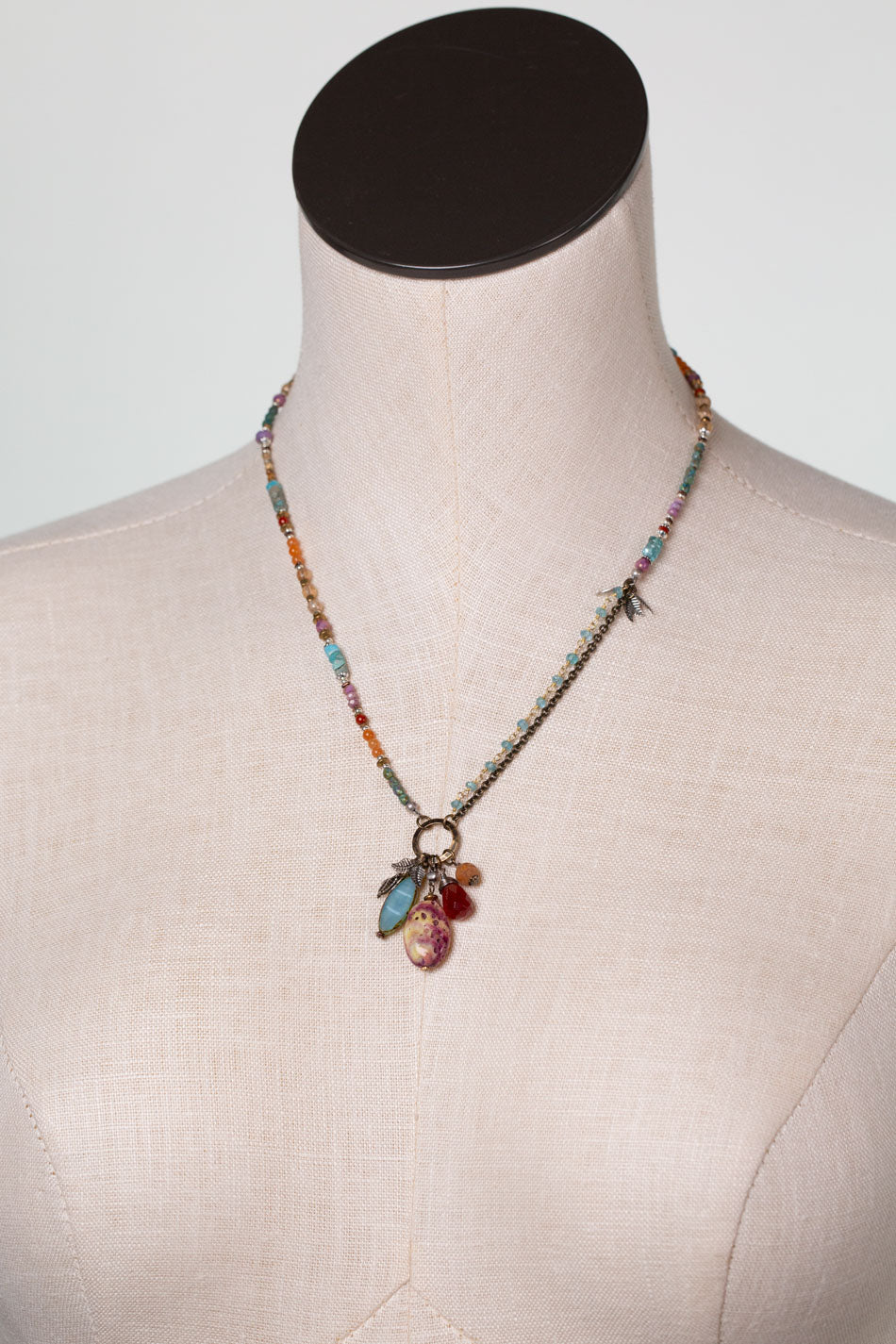 Earthen Carnelian, Czech Glass, Turquoise With Agate Pendant Collage Necklace