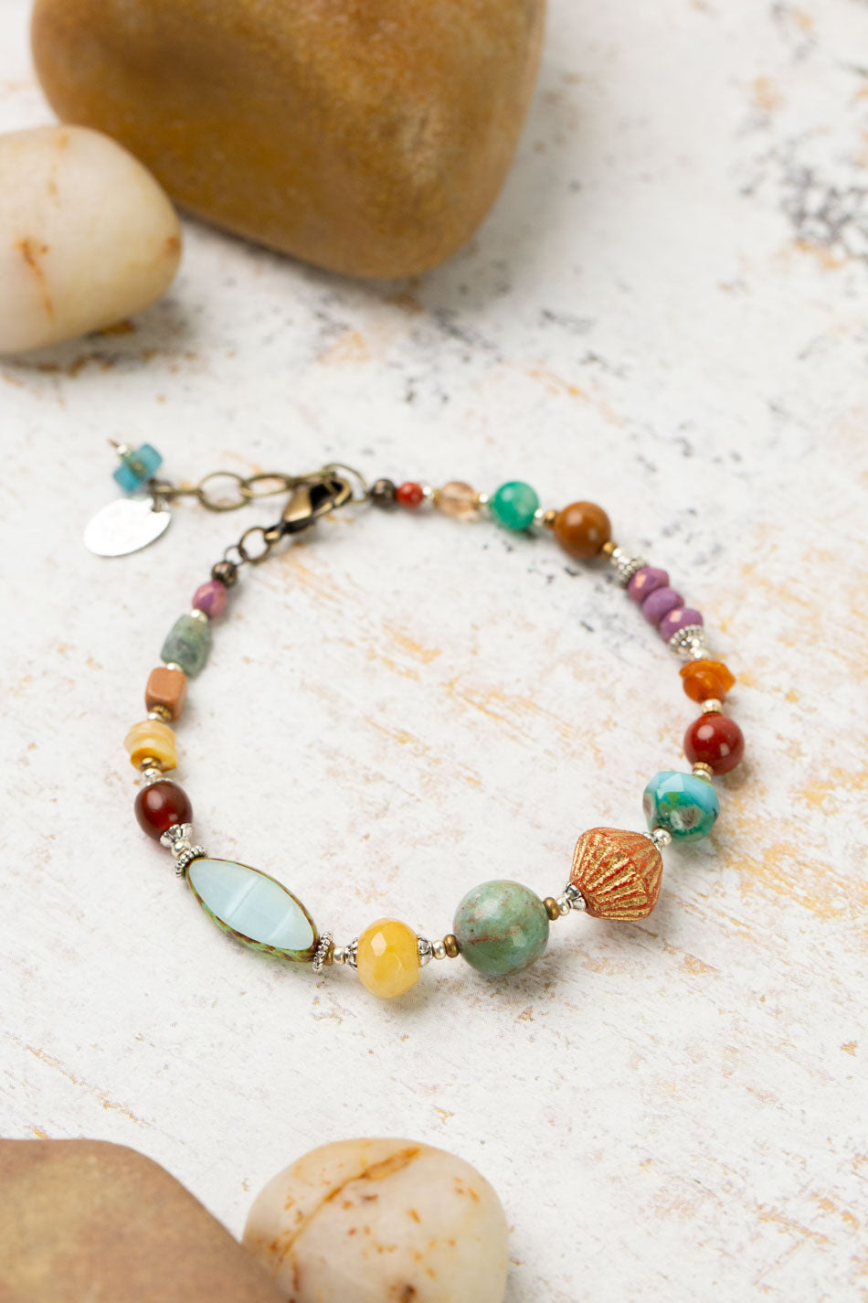 Earthen 7.5-8.5" Jasper, Czech Glass, Turquoise Simple Bracelet