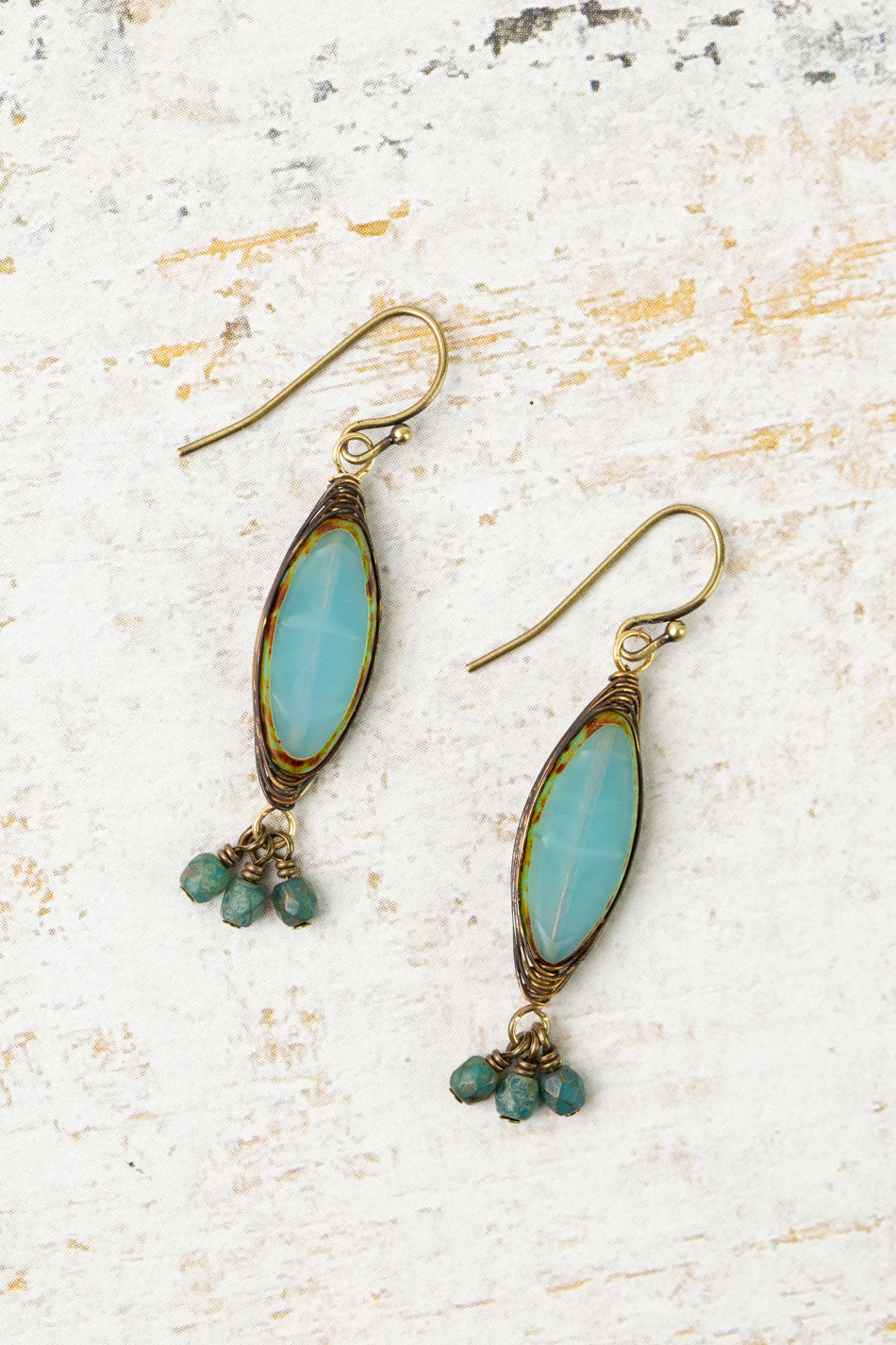 Earthen Czech Glass, Antique Silver Leaves Dangle Earrings