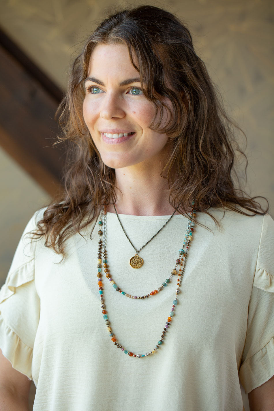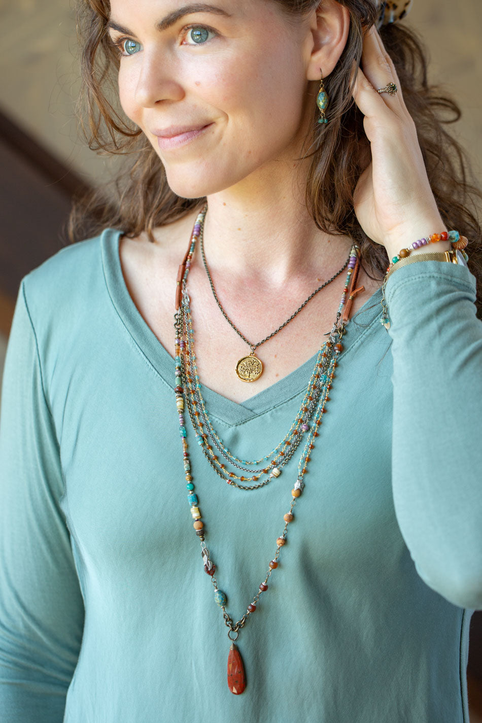 Earthen 59-61" Carnelian, Czech Glass, Turquoise Collage Necklace