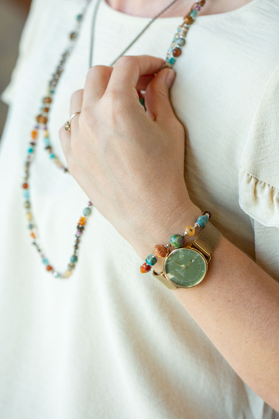 Earthen 7.5-8.5" Jasper, Czech Glass, Turquoise Multistrand Bracelet