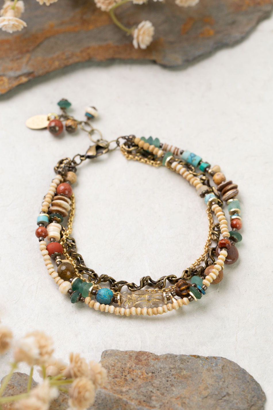 Enlighten 7.75-8.75" Czech Glass, Sea Glass, Shell Multistrand Bracelet