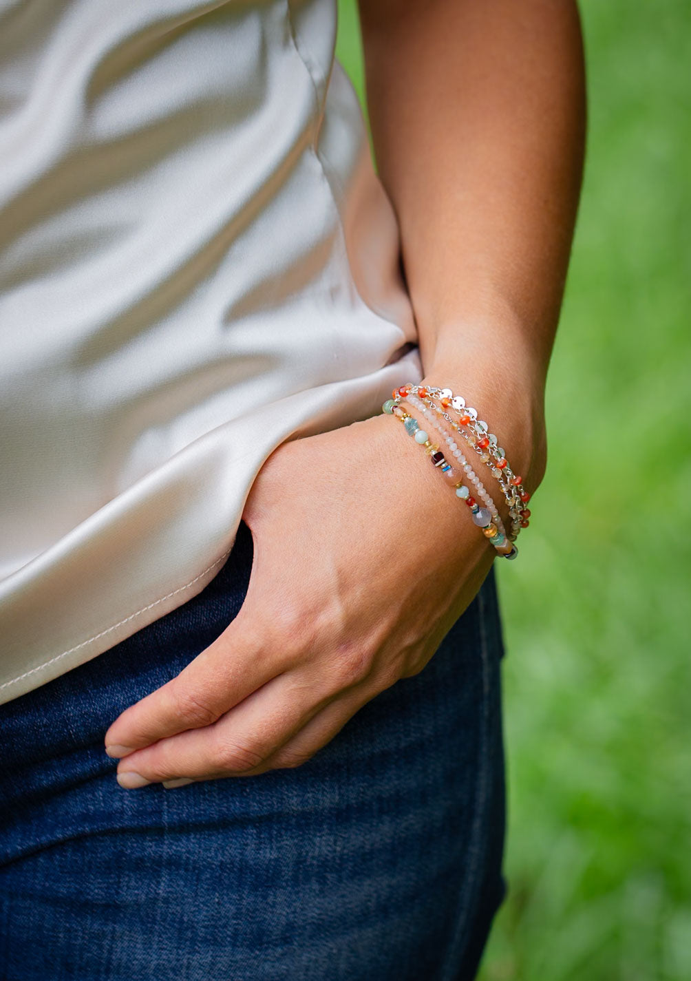 Gentle Breeze 7.5-8.5" Peach Moonstone, Garnet, Carnelian Multistrand Bracelet