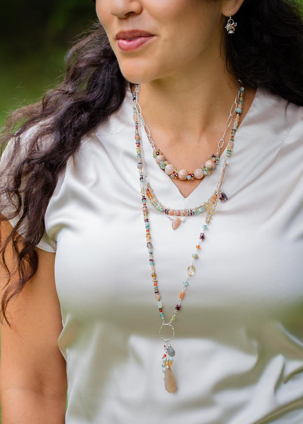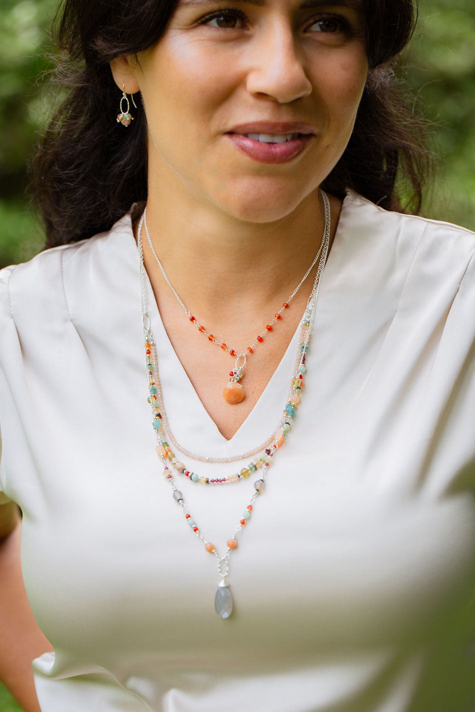 Gentle Breeze 21-23" Peach Moonstone, Carnelian, Apatite Multistrand Necklace