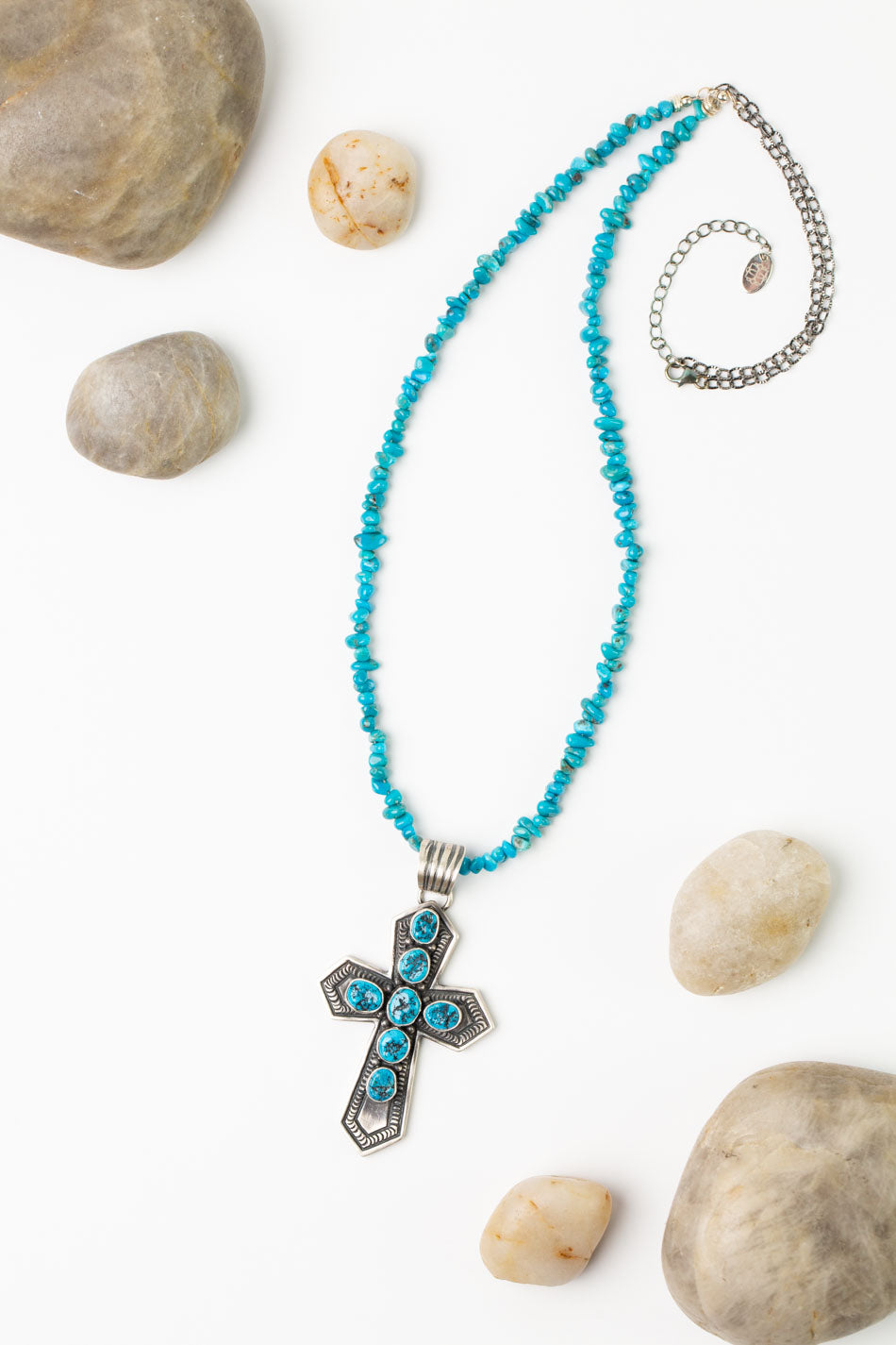 Jereme Delgarto 25-27" Kingman Turquoise Cross Statement Necklace