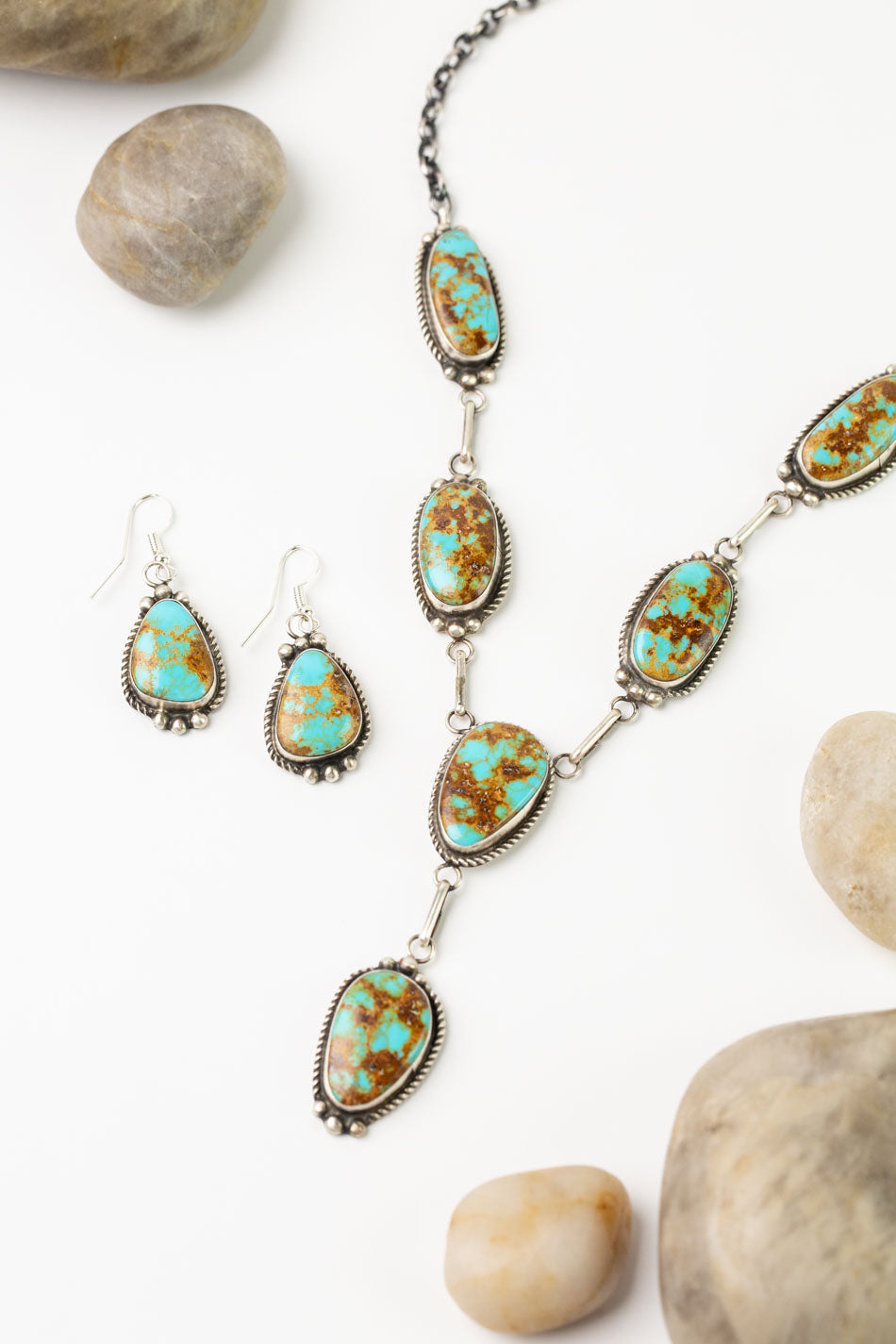 Donovan Nez 21" Kingman Turquoise Statement Necklace And Earrings Set