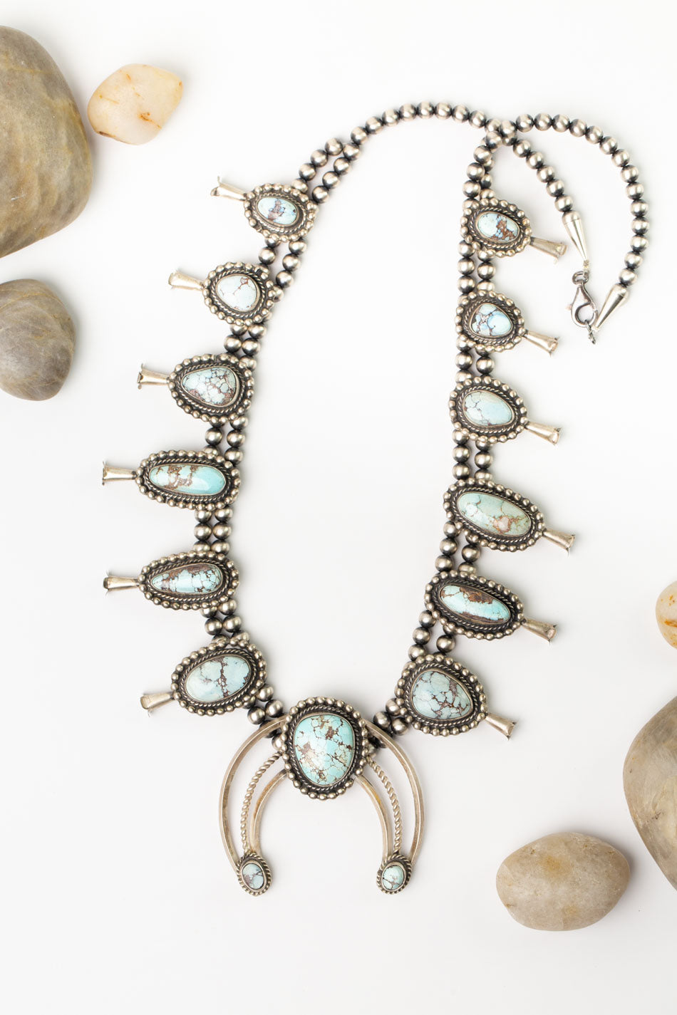 Sam Yellowhair 18" Desert Pearls With Palomino Turquoise Statement Necklace