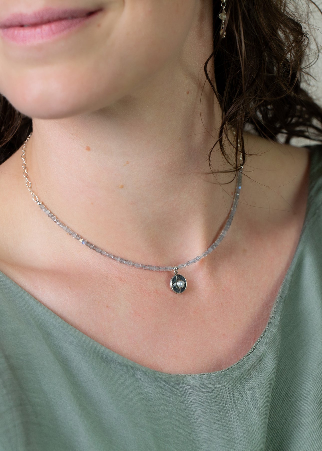 Mystic 16-18" Labradorite With Pearl In Silver Star Pendant Simple Necklace