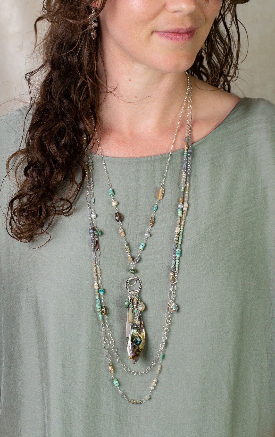 Mystic 74-76" Abalone, Turquoise, Labradorite Collage Necklace