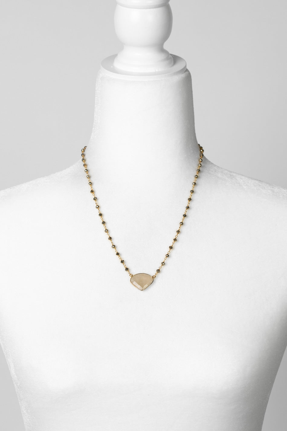 Silver & Gold 27-29" Pearl, Crystal, Pyrite Simple Necklace