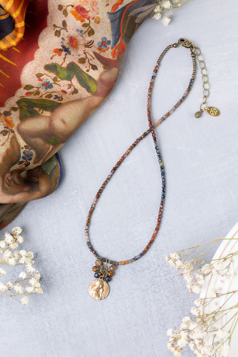 Sacred Heart 15-17" Pietersite With Antique Coin Pendant Simple Necklace
