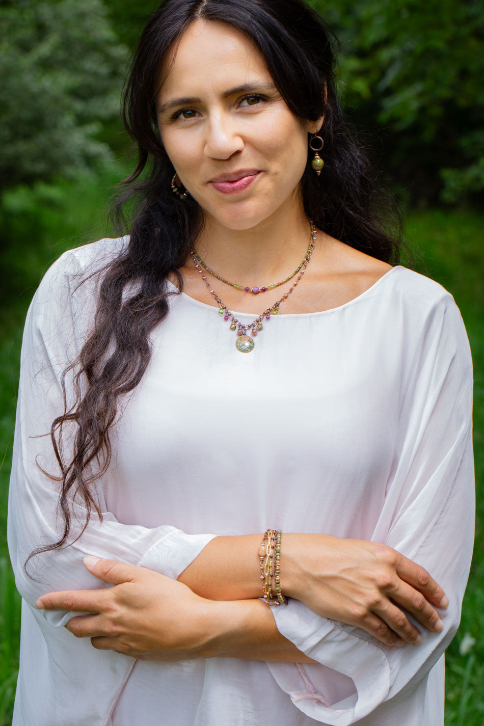 Thrive 25.5-27.5" Citrine Iolite, Blue Apatite, Peridot, Labradorite With Handmade Hill Tribe Fine Silver Floral Mandala Circle Pendant Statement Necklace