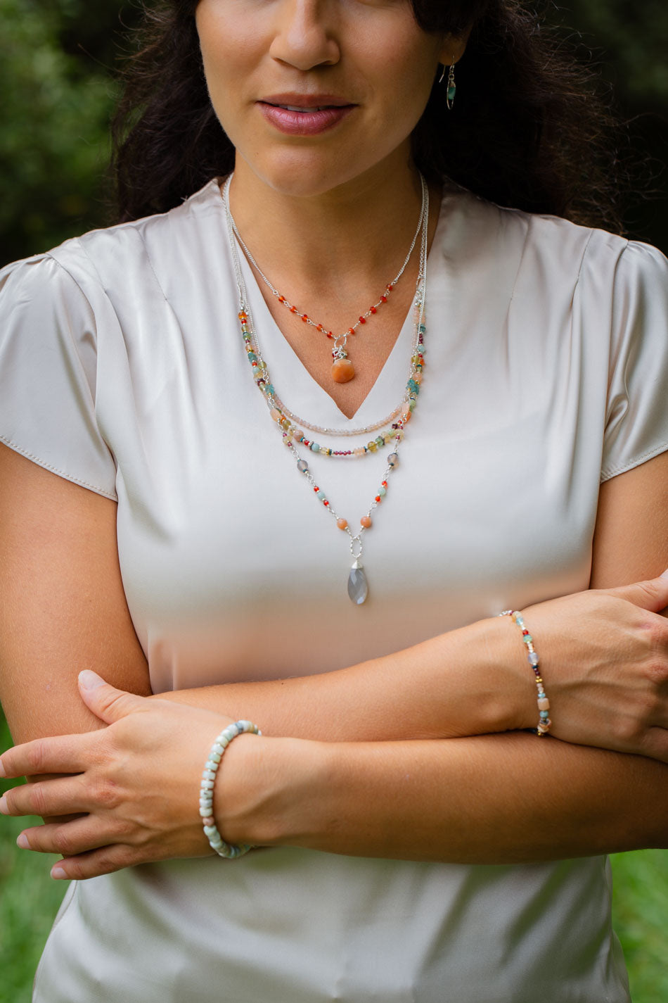 Gentle Breeze 26.5-28.5" Grey Moonstone, Carnelian, Peach Moonstone Statement Necklace