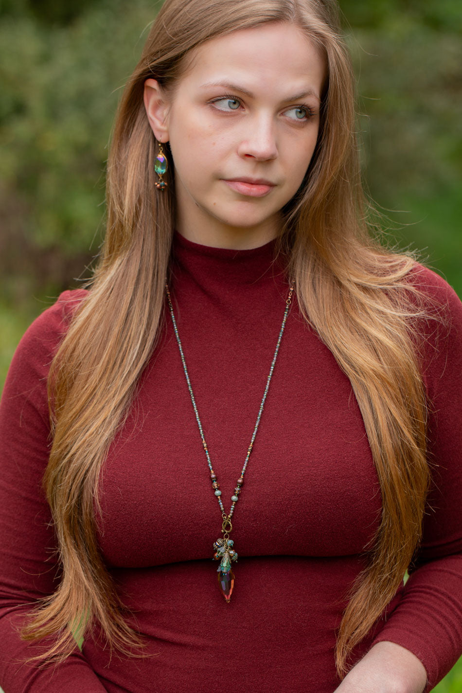 Crisp Autumn 31" Czech Glass, Crystal, Freshwater Pearl Cluster Necklace